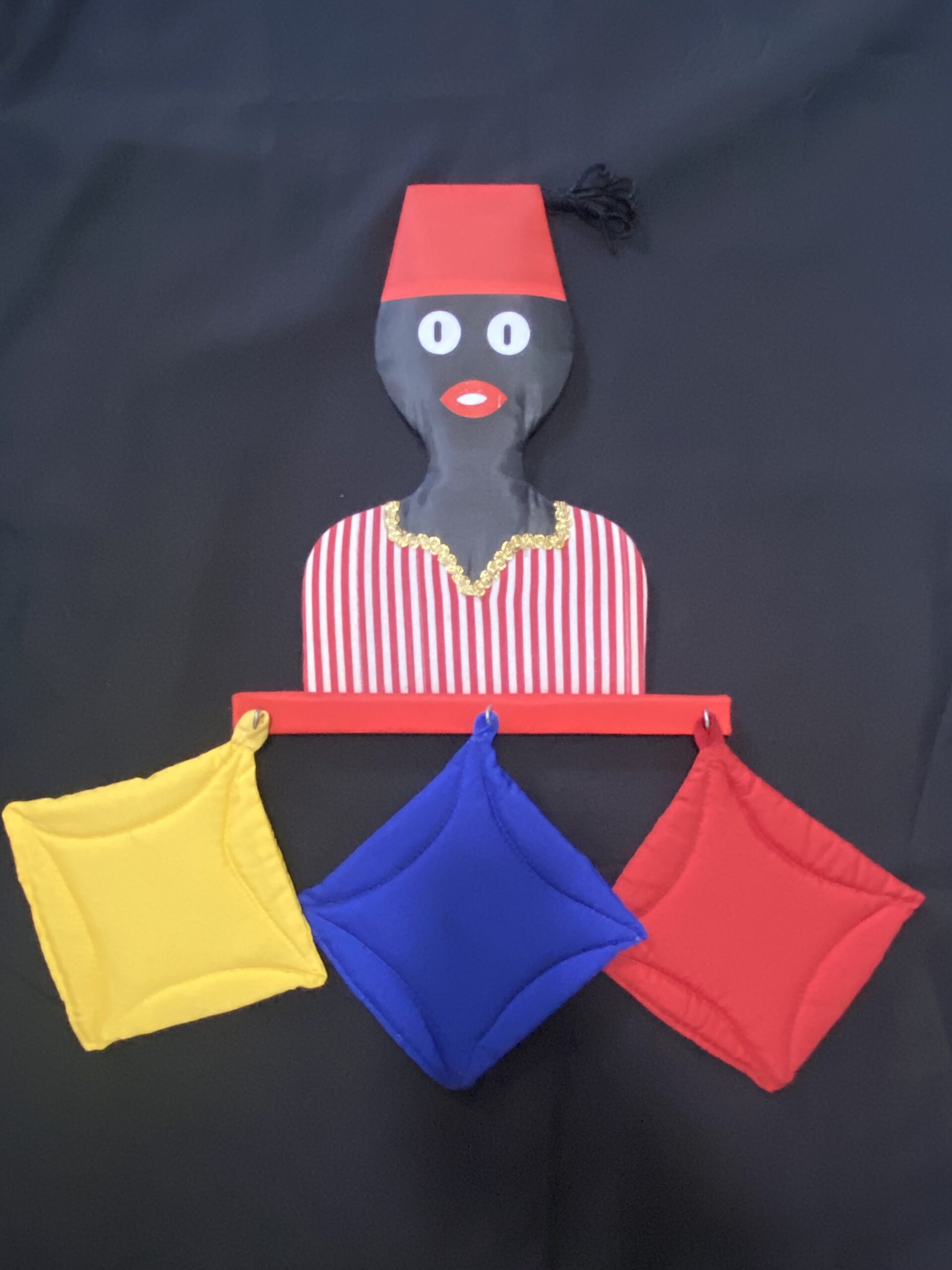 Lightweight kitchen hanger, perfect for oven mitts, pot holders, tea towels and other kitchen tools. Abo Tarboush comes with decorative pot holders, and magnets can be added.